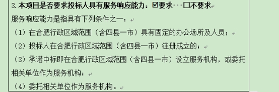 4.招标文件第二章附录5中关于服务响应能力要求: