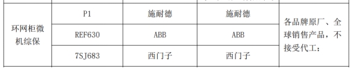 答:经ABB官网查询,ABB REF630可用于电缆馈线。施耐德P1调整为P3,其他按招标文件执行。