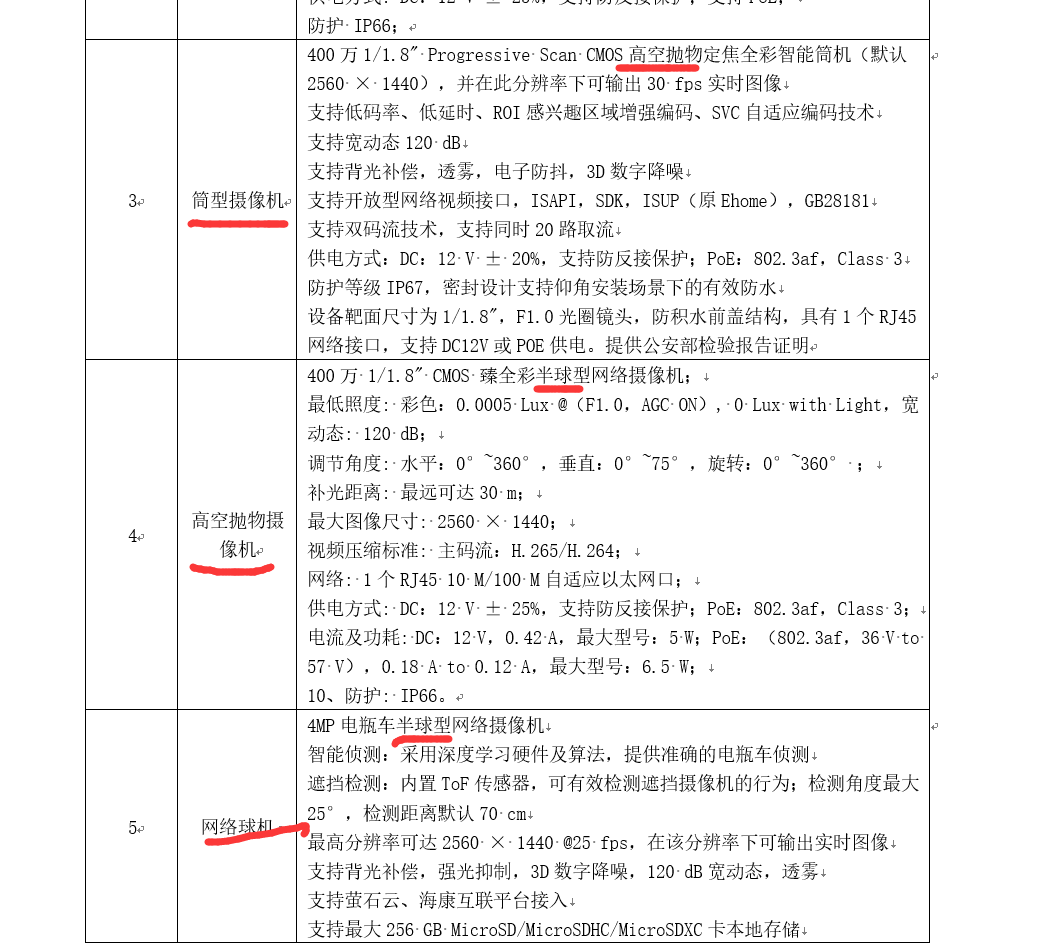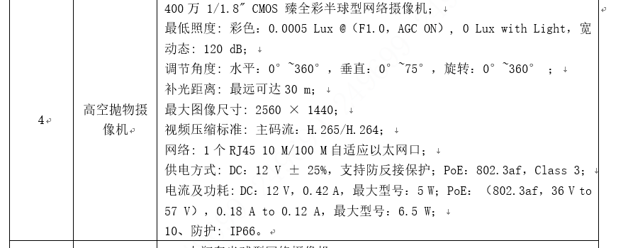 4.高清抛物摄像机----技术规范书参数中参数要求为半球,由于高空抛物摄像机一般是立杆安装,并需要一定仰角,半球不适合该场景,且目前市场主流安防厂家并无半球高空抛物摄像机,请确认该参数描述是否正确?参数是否需要调整?