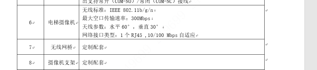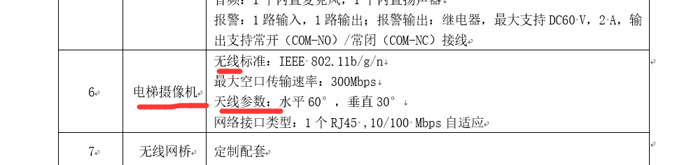 6. 电梯摄像机----技术规范书参数中参数要求明显为无线网桥参数,该参数要求与7.无线网桥相符合,请确认该参数描述是否正确?参数是否需要调整?