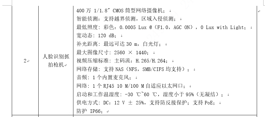 2.人脸识别抓拍枪机-----技术规范书参数中无明显提出需要人脸识别描述,请确认该参数描述是否正确?该参数是否为3.筒型摄像机描述?参数是否需要调整?