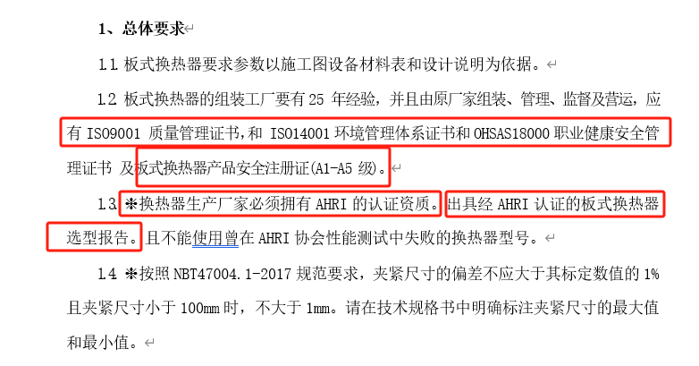 16.请贵司明确“主要空调设备技术规格书”中所有要求提供的相关设备资料(诸如下截图),本次投标文件中是否需要提供?可否在中标后再提供?