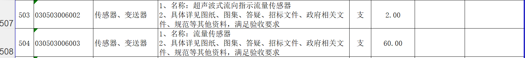 28.请问招标清单中第503项及第504项的超声波式流向指示流量传感器及流量传感器安装于何处?并请明确各传感器的规格尺寸参数以便投标人询价。