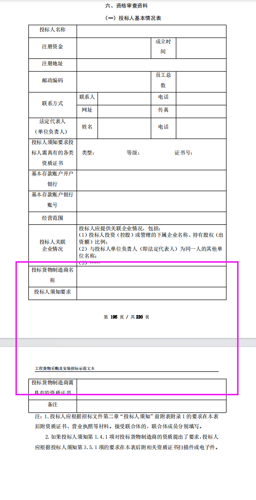46.招标文件中“六、资格审查资料(一)投标人基本情况表”如下表,我司非代理经销商。请问“投标货物制造商名称”、“投标人须知要求投标货物制造商需具有的资质证书”模块信息是否填写响应招标文件即可,无需提供相关证书?