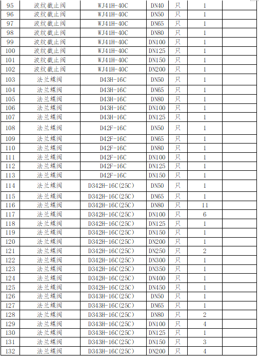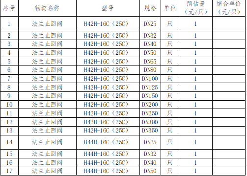 1、标段1、2、3的清单中型号公称压力出现矛盾如:H42H-16C(25C),请确认按照16C还是25C哪个为准?