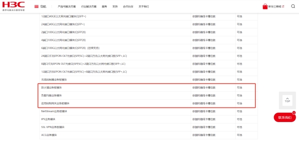 9.支持扩展防火墙业务模块、负载均衡业务模块、应用控制网关业务模块、IPS业务模块(要求所有业务模块必须为独立硬件,为保证兼容性必须与交换机为同一生产厂商)便于后期安全防护的灵活扩展,提供官网选配信息截图证明;”