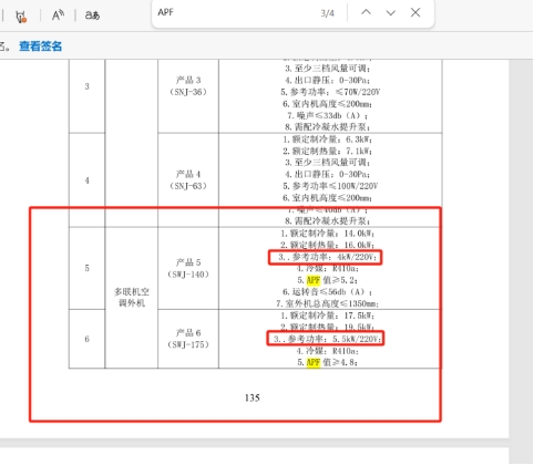 答:室外机功率在满足APF值情况下,以厂家出厂标准为准,详见第二部分:招标文件修改部分。