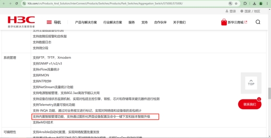 建议修改:删除“5.内置智能管理功能,支持通过图形化界面设备配置及命令一键下发和版本智能升级”。