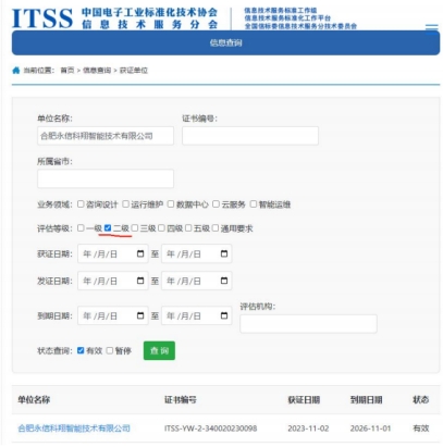 24、招标文件第“58 页-投标人资信、认证第 3 条:投标人具有信息技术服务运行维护标准符合性证书(ITSS)且等级在贰级及以上证书或 CCRC 信息系统安全运维服务资质二级及以上认证证书的”。结合第一条公开资料查询结果,投标人资信、认证第 3 条内容存在倾向性,建议修改为:“投标人具有信息技术服务运行维护标准符合性证书(ITSS)且等级在叁级及以上证书或CCRC 信息系统安全运维服务资质三级及以上认证证书的”。查询结果截图: