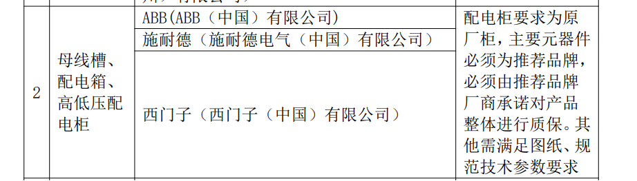 回复:主要元器件指配电箱内部主要元器件和高低压柜内部主要元器件。后台监控系统品牌不需要为三大家,但需要满足国家和行业标准以及业主使用需求。