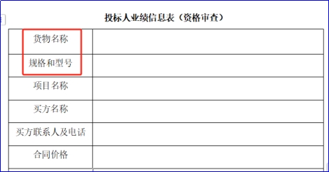 6.投标文件格式“投标人业绩信息表”,若提供的是场馆设计施工一体化业绩,通常是填写项目名称,前面两项“货物名称、规格和型号”是否可以填写斜杠符号/?