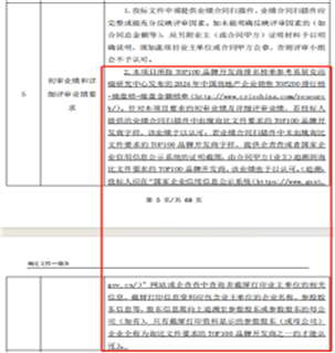 32.询比文件-第二章投标人须知-第一条投标人须知前附表-5.初审业绩和详细评审业绩要求-第二条中提出,业绩要求必须是指定TOP100品牌开发商。举例“1、保利发展”、“2、中海地产”追溯信息是否有关键词“保利”、”中海“即可。