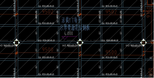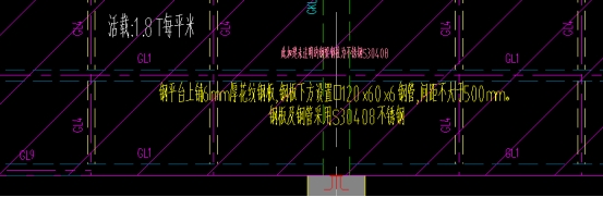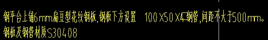 回复:未注明的可以采用扁豆型花纹钢板,有原位标注的按原位标注,即E-G轴~E-R轴交E-4轴~E-14轴范围内加建夹层钢板采用S30408。