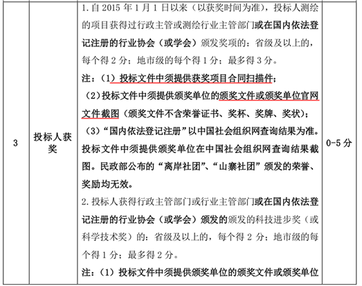 说明:“投标人获奖”此项评审指标的第1条和第2条,我公司获得的奖项既属于投标人测绘项目奖项,又属于公司奖项,请问如果这两条提供的证明材料为同一个,打分的时候是否可以重复计分?