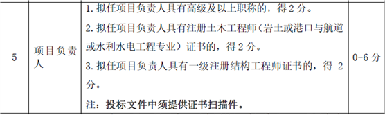 2.拟任项目负责人具有注册土木工程师(岩土或港口与航道或水利水电工程专业)证书的,得2分。