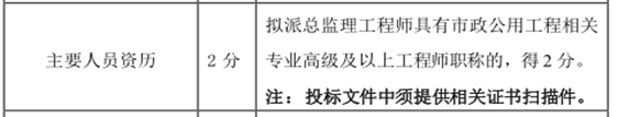 拟派总监理工程师具有园林相关专业或市政公用工程相关专业高级及以上工程师职称的,得2分。