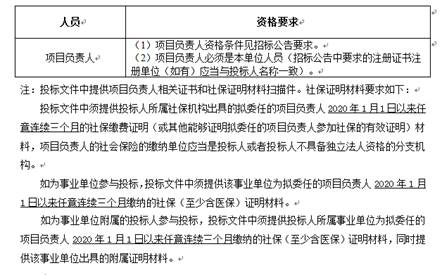 答:如为退休返聘人员,则须提供退休证明,并同时提供该人员与投标人存在聘用关系的合同文件。