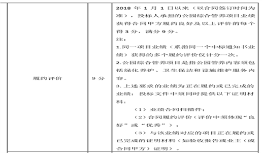 201811日以来(以合同签订时间为准),投标人具有公园综合管养项目业绩,且单个业绩合同中管养面积: