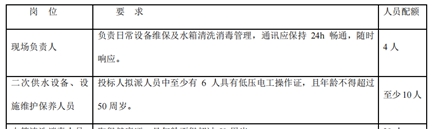 答:提供二次供水设备、设施维护保养人员至少为10人,其中至少有6人具有低压电工操作证。