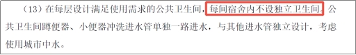 23.招标文件规定宿舍每层设计满足使用需求的公共卫生间,每间宿舍内不设独立卫生间,经调研发现现状合肥大学宿舍内含有独立卫生间,本次投标设计标准是否降低为不设独立卫生间?(下为附图)