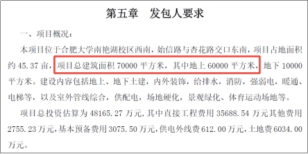 答:项目总建筑面积70000平方米不包括6000平方米食堂,此食堂的方案及施工图设计不在本次招标范围。