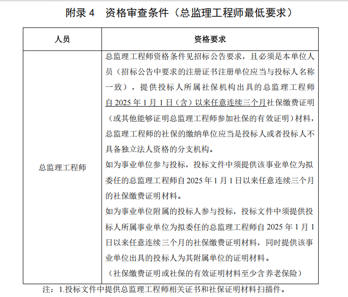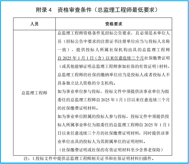 3.第二章投标人须知“P32页”附录 4 资格审查条件(总监理工程师最低要求)