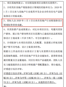 答复:此处为技术文件评审标准(设计方案)中的投标人团队设计能力综述部分,为展示投标人展示精装修设计能力水平。投标人根据评审标准提供设计方案即可。