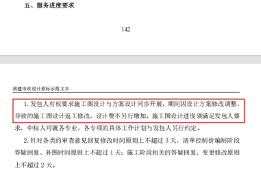 8.“发包人有权要求施工图设计与方案设计同步开展,期间因设计方案修改调整,导致施工图设计返工修改,设计费不另行增加”,正常情况下施工图设计需在方案设计完成且经发包人确认后开展,此项存在不合理的情况,建议删除。