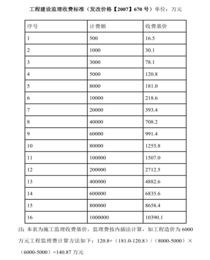 附:工程建设监理收费标准(发改价格【2007】670号):