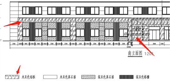 10.2外立面施工图中,所示材质为米灰色铝板。节点图中却表示为米灰色花岗岩,具体以那个为准?又如何在清单中界定计算相关工程量?