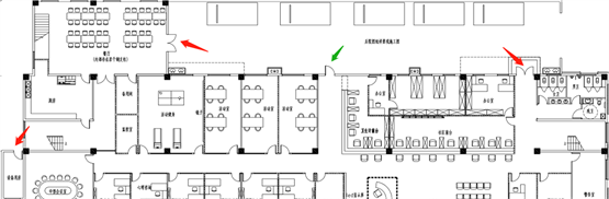 10.1一层平面布置图中,绿色箭头和红色箭头所指均为与室外相通的门。绿色箭头所示的防盗门,在清单中有列项。但除此外是否均为木质门?如为木质门是否满足相应功能?