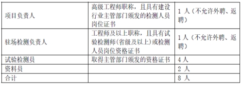 2、问:本项目磋商文件第4页招标公告“3.投标人资格要求”中要求“3.3项目负责人资格要求:投标人拟委任项目负责人须具有试验检测师证书或检测人员岗位证书。”及磋商文件第88页和89页“第五章 发包人要求”中“六、人员配备(不作为初审)”