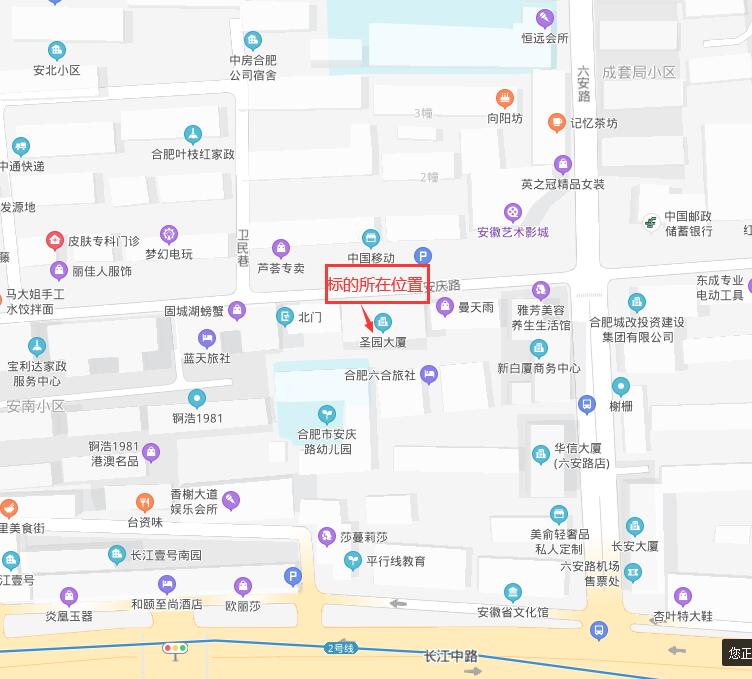 | 1.标的坐落位置:位于合肥市安庆路125号圣园大厦,标的具体位置范围、涉及标的的使用情况需由意向承租人现场踏勘时向委托方咨询了解。 2.标的权属情况:有房产证,无土地证。房产证为大证未分割。该项目房产面积为估算面积,仅供参考。租赁标的无权属纠纷,委托方将提供该处标的的权属证明和租赁证明,方便承租人办理相关证照。 3.标的房屋按现状出租,无配套停车位,如有水、电、消防等升级,由承租人自行自费承担。 | |||||||||||