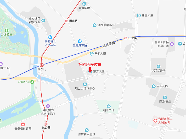 | 1.标的坐落位置:瑶海区明光路46号东方大厦。 2.标的权属情况:租赁标的无房地产权证、无土地使用权证,该项目房产面积为估算面积,仅供参考。租赁标的无权属纠纷,委托方将提供该处标的的权属证明和租赁证明,方便承租人办理相关证照。 | |||||||||||