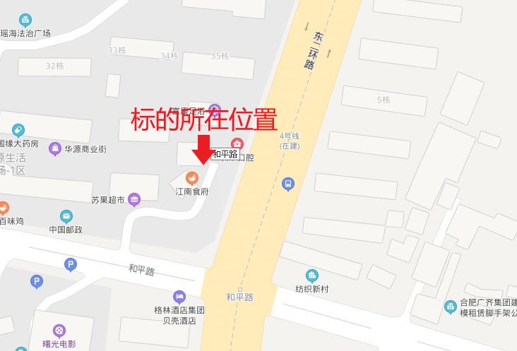 | 1.标的坐落位置:瑶海区和平路110号华源国际城二区 2.标的权属情况:租赁标的有房地产权证,无土地使用权证。租赁标的无权属纠纷,委托方将提供该处标的的权属证明和租赁证明,方便承租人办理相关证照。 |