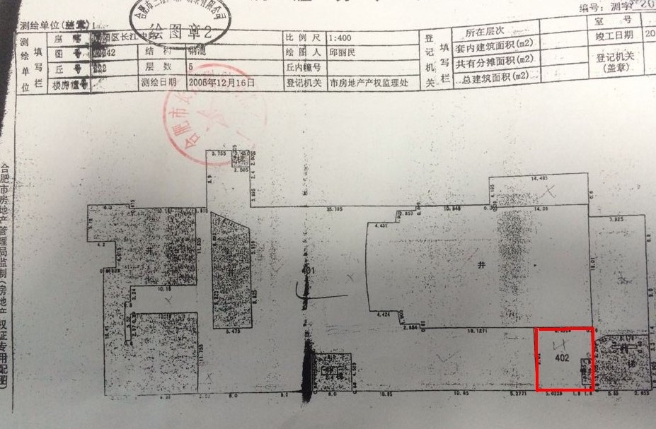 4.根据房产证规划图(详见图三)显示,标号为402的房产属于其他产权人所有,不在此次出租范围内。承租人须在公告期内,结合图纸实地踏勘,确认402房产对应范围。承租人如须使用该部分房产,可在本项目成交后与402房产产权人自行协商租赁,与本项目委托方及合肥市产权交易中心无关。