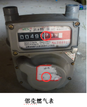 5.为避免本次处置的废旧表具再次流入社会,造成燃气安全隐患,本次转让范围内所涉报废膜式燃气表须在现场进行破坏,破坏方法为在表腔和表具计数处进行打孔,详见下图。(红色圆圈标记处)
