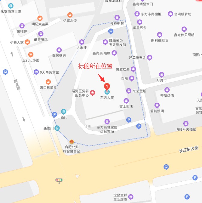 | 1.标的坐落位置:合肥市瑶海区明光路46号东方大厦第二十一层。