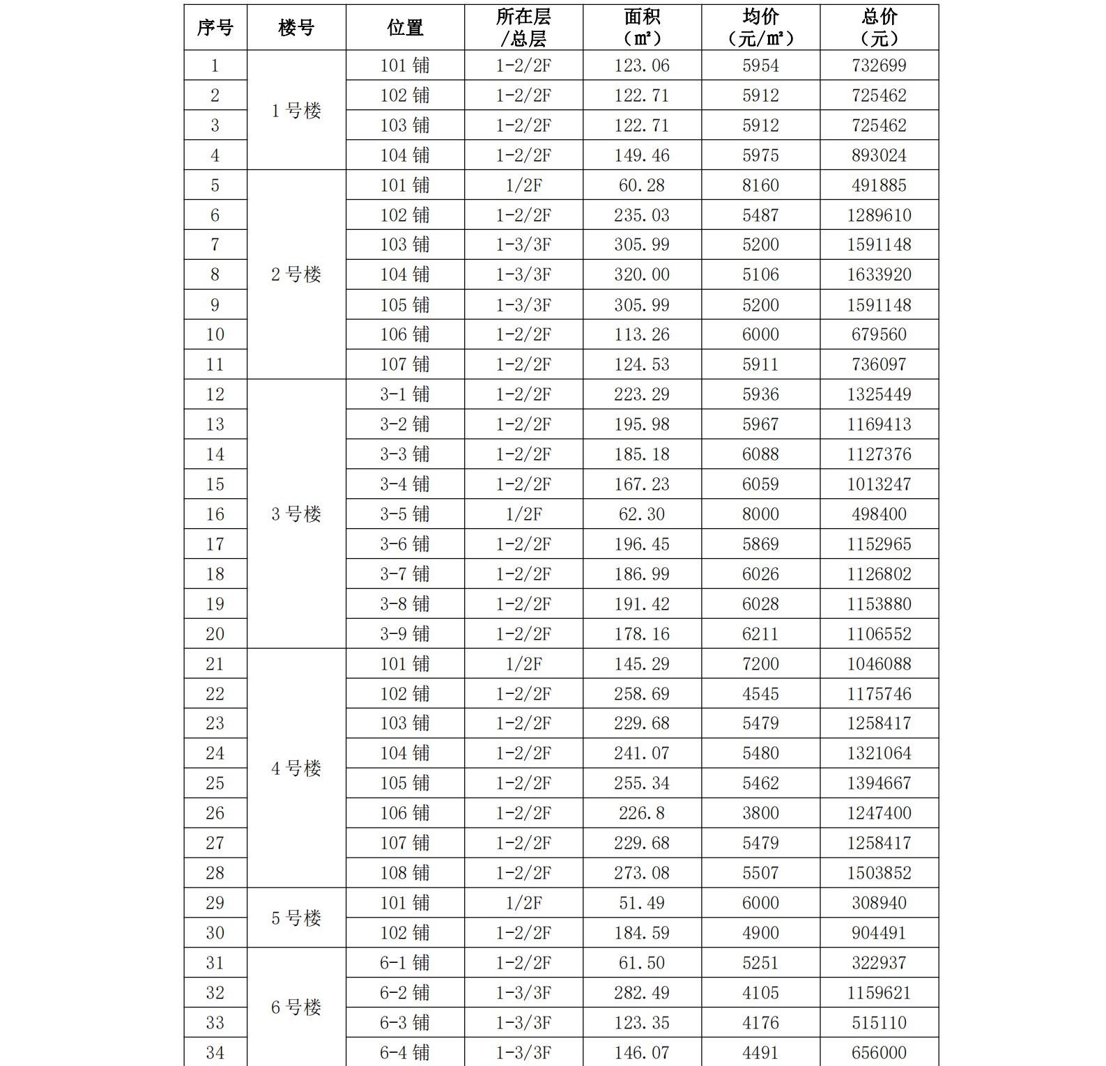 房屋评估结果明细表