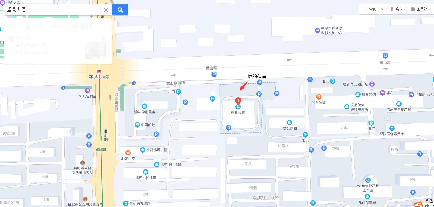 | 1.标的坐落位置:合肥市黄山路与潜山路交叉口盛景大厦。