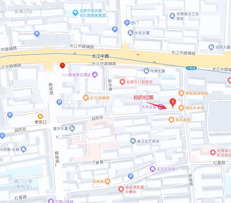 | 1.标的坐落位置:合肥市益民街和舒城路交口向西约20米。