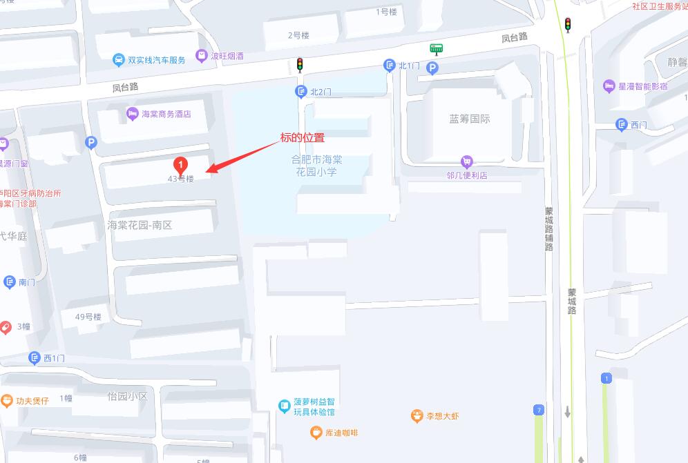 | 1.标的坐落位置:合肥市海棠花园北区东北门北侧。