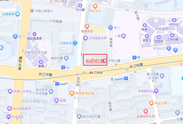 | 1.标的坐落位置:合肥市长江中路136号。具体广告位位置及范围以现场踏勘为准,意向承租人须认真踏勘现场以充分了解标的现状,如有疑问主动向委托方咨询。