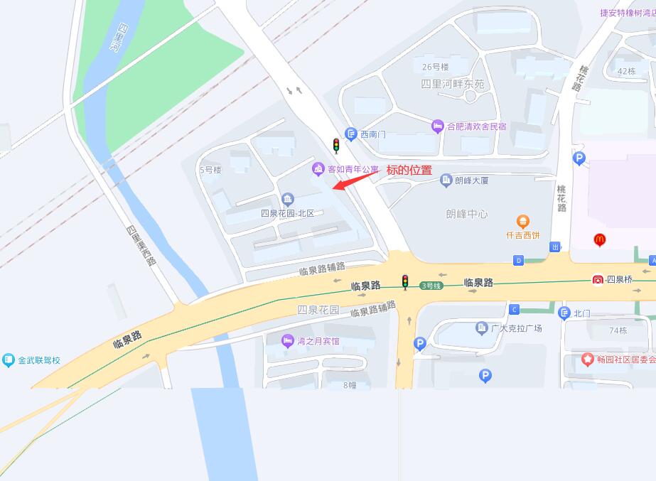 | 1.标的坐落位置:合肥市肥西路与临泉路交口四泉花园东侧第三标段附1号。