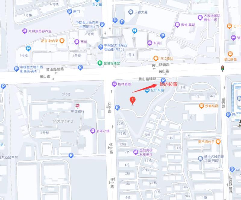 | 1.标的坐落位置:安徽省合肥市蜀山区黄山路与怀宁路交口黄怀路停车场配套用房。 2.标的权属情况:该标的有不动产权证(大证未分割),标的面积为委托方估算面积,仅供参考。标的无权属纠纷,委托方将提供该处标的的权属证明或租赁证明,方便承租人办理相关证照。 3.标的房屋已装修,有隔断、吊顶、地砖。 4.标的房屋水电表已出户,物业费由委托方按照3元/平方米/月的标准向承租人收取。 |