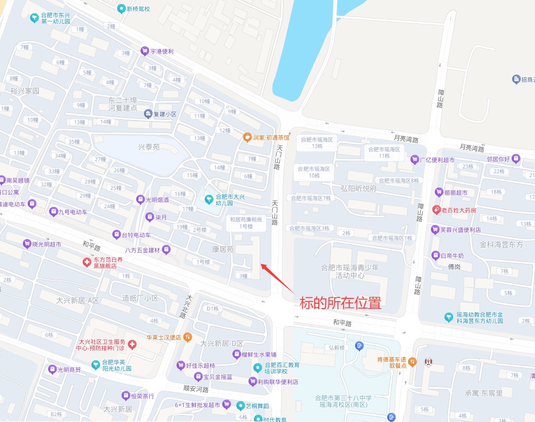 | 1.和康居苑公租房商业用房位于合肥市瑶海区和平路与天门山路交口和居苑2、3幢。经营房产为框架结构,层位为1-2层,建筑面积约814.4㎡,面积仅供参考,以实际移交面积为准,实际移交面积存在差异的,不调整成交价格。具体区域范围由意向方自行向委托方咨询了解确认。