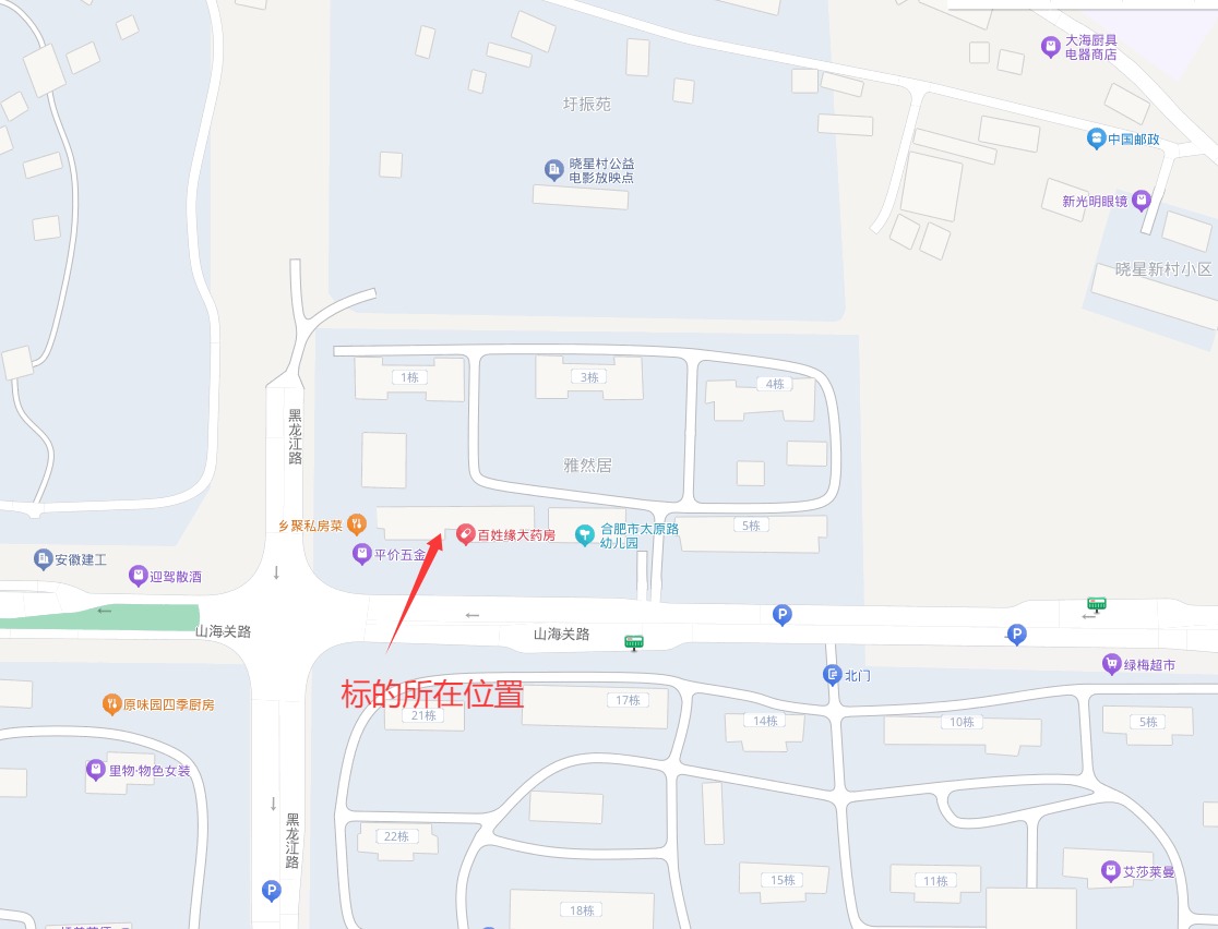 | 1.雅然居101、102#楼公租房商业用房位于合肥市包河区山海关路202号雅然居2幢。经营房产为框架结构,层位为第1层,建筑面积约382.86㎡,面积仅供参考,以实际移交面积为准,实际移交面积存在差异的,不调整成交价格。具体区域范围由意向方自行向委托方咨询了解确认。